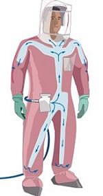 einteiliger, fremdbelüfteter Schutzanzug für hochkontaminierte Bereiche